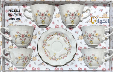كمية اكواب للشاي / الحليب مع صحن بنقشة